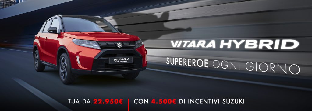 Nuova Vitara Hybrid COOL+ è tua a 22.950€* nella versione 2WD e a 25.950€* con il sistema di trazione integrale Suzuki 4×4 ALLGRIP. “Tutto di serie senza sorprese” per entrambi i modelli, con sistemi di guida assistita di serie a partire dall’allestimento COOL+.